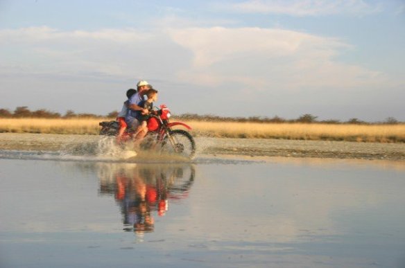 We often used to take the 230km trek from Francistown to the pans especially in Winter when the sun, which shone most days, warmed up those aching bones! It was actually surreal being in the middle of a huge dried-up lake with nothing but sand and salt and stark contrasts of pink, blue and green.
